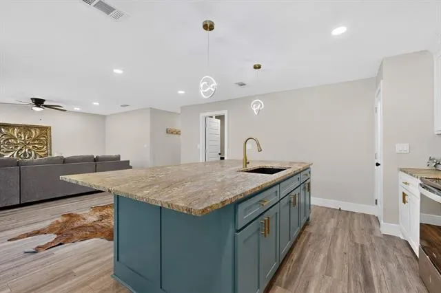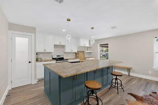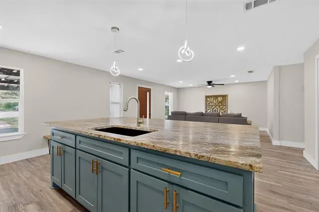 The fully upgraded kitchen serves as the centerpiece of the home, complete with an oversized island, modern finishes, and a seamless flow into the main living area, ideal for hosting gatherings or enjoying time with family.
