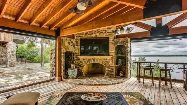 One of Eagle Mountain Lake’s most picturesque homes and settings. A 1945 Log Home completely renovated that will require a drool towel as you look at the pictures. The Waterfall will put you in a ‘PEACEFUL EASY FEELING’. Outdoor cooking appliances on steroids. A dock that is ‘DROUGHT RESISTANT’ with 13′ water depth at the boat’s motor. Outdoor storage building that could be an office-guest house. 4,200′, 4 bedrooms, 3.5 baths and almost an acre of pure genius preservation brings this estate to life. Easy access to Fort Worth. Located in front of the deepest depth on the lake. Be overwhelmed by the ‘CRYSTAL BLUE PERSUASION’ and schooled on what Lake Living really entails. Discover why John Denver and the Eagles spent years close to this property. This property is as sweet as ‘TUPELO HONEY’, so stop ‘FOOLING YOURSELF’ grab your ‘LADY’ or ‘BABE’ and ‘COME SAIL AWAY’ for ‘THE BEST OF TIMES’ on what most polls call the best sailing lake in Texas. Bonus is there are no ‘STYX’ in the lake.