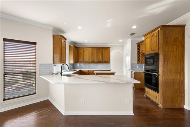 Best buy in Eagle Ridge at Eagle Mountain Lake! Beautiful custom home neighborhood with one entry access. The perfect combination! 4 bedrooms, 3 full baths! Vacant, updated and move-in ready! Wood floors on the entire first floor and rich moldings. Formal living area and dining room- is a open and large flexible space. Kitchen updates with quartz countertops, new downdraft gas cooktop, updated microwave and convection oven. Pretty island kitchen is open to the main living space. Living area has a fireplace and is spacious for any furniture arrangement. A study with french doors is off the entry. The primary suite is large enough to have a sitting area. There are two walk in closets, dual sinks, separate tub and shower. A secondary bedroom upstairs is enormous and could be a 3rd living area, gameroom or media space. Back yard entertaining living area is 25×18 plus a covered patio. Brand new carpet in other areas, whole house painted Dec 2025, updated water heater, 2 high efficiency wifi enable AC units. Programable thermostats, front and back patios, attic access from upstairs hallway. Fenced utility area for storage, small storage sheds remain, raised beds. For lake access, dock, launch, pickel ball, etc you may join the voluntary HOA called Lake Country Property Owners Association.