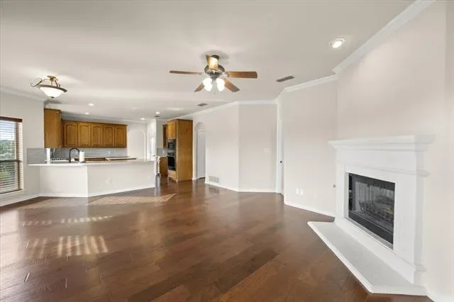 Best buy in Eagle Ridge at Eagle Mountain Lake! Beautiful custom home neighborhood with one entry access. The perfect combination! 4 bedrooms, 3 full baths! Vacant, updated and move-in ready! Wood floors on the entire first floor and rich moldings. Formal living area and dining room- is a open and large flexible space. Kitchen updates with quartz countertops, new downdraft gas cooktop, updated microwave and convection oven. Pretty island kitchen is open to the main living space. Living area has a fireplace and is spacious for any furniture arrangement. A study with french doors is off the entry. The primary suite is large enough to have a sitting area. There are two walk in closets, dual sinks, separate tub and shower. A secondary bedroom upstairs is enormous and could be a 3rd living area, gameroom or media space. Back yard entertaining living area is 25×18 plus a covered patio. Brand new carpet in other areas, whole house painted Dec 2025, updated water heater, 2 high efficiency wifi enable AC units. Programable thermostats, front and back patios, attic access from upstairs hallway. Fenced utility area for storage, small storage sheds remain, raised beds. For lake access, dock, launch, pickleball, etc you may join the voluntary HOA called Lake Country Property Owners Association.