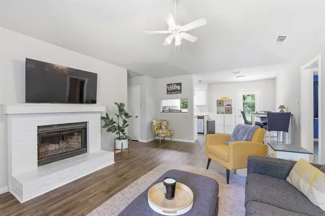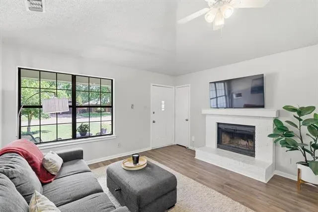 Step into a bright, airy sanctuary where the open-concept layout invites you to host Friday night game nights or quiet Sunday mornings. The living room, anchored by a chic white-brick fireplace, serves as the ultimate backdrop for making memories. With stylish luxury vinyl plank flooring and a seamless flow into the dining area, the space feels contemporary yet warm—a true breath of fresh air the moment you walk through the door.