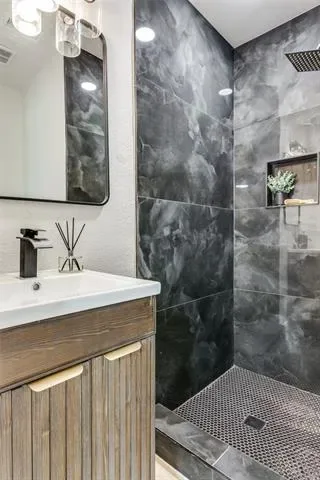 This 3-bedroom, 2-bath home features a spacious, open-concept layout perfect for everyday living and entertaining. The primary suite offers a stylishly updated bathroom with bold black tile and a new vanity, creating a modern, spa-like retreat.