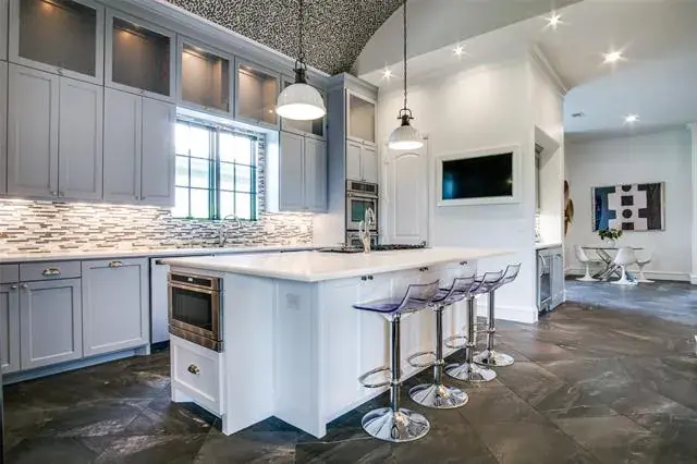 Situated in the heart of Fort Worth’s prestigious Edwards Ranch Riverhills neighborhood near TCU, this stunning French-style estate blends timeless elegance with modern luxury, offering an unparalleled living experience. A grand entrance welcomes you with an impressive statement staircase, setting the stage for the exquisite details found throughout the home. Boasting five generously sized bedrooms and multiple living areas, this home is designed to accommodate both intimate gatherings and large-scale entertaining. The open-concept chef’s kitchen is a culinary masterpiece, featuring high-end appliances, custom cabinetry, and an oversized island that flows effortlessly into the main living space, accentuated by soaring vaulted ceilings and expansive windows that bathe the interior in natural light while showcasing breathtaking views of the beautifully turfed backyard. The outdoor living area is a true extension of the home, complete with a built-in kitchen, covered dining space, and plenty of room to relax or entertain. The primary suite offers a serene escape with a spa-inspired bathroom featuring a soaking tub, walk-in shower, dual vanities, and an expansive closet designed for ultimate organization. A private office attached to the primary suite overlooks the backyard and presents a versatile space perfect for a home gym, study, or retreat. Upstairs, guest suites are adorned with impeccable finishes and provide a perfect blend of comfort and privacy, complemented by additional living space and a media room ideal for movie nights or relaxing. Every detail of this home has been thoughtfully designed to create a seamless flow between luxurious indoor spaces and beautifully appointed outdoor areas. Nestled across from a scenic park and walking trails, this home offers a rare combination of elegance, convenience, and tranquility in one of Fort Worth’s most coveted neighborhoods.