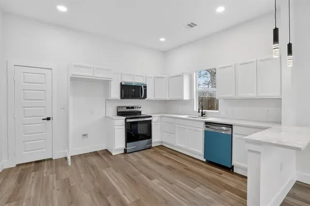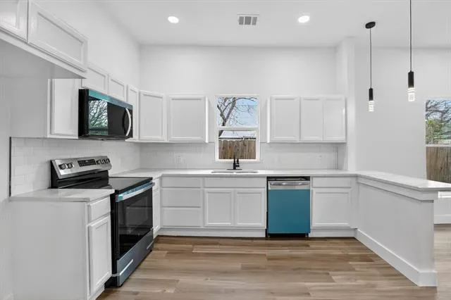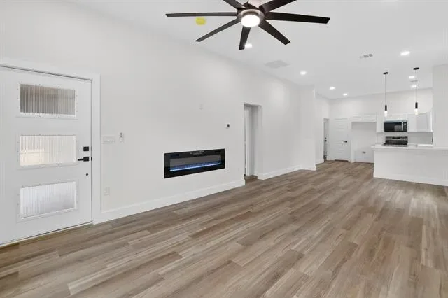Fully remodeled 3 Bedroom Beauty with modern upgrades. Welcome to this beautifully remodeled 3 bedroom, 2 bath home designed with modern style and comfort in mind. The home features a bright open-concept layout enhanced by a large new windows that fill the space with natural sunlight, creating a warm and inviting atmosphere. The stunning kichen showcases granite countertops, sleek modern cabinets, and updated finishes, perfect for both everyday living and entertaining. Stay Comfortable year-round with a brand new HVAC system. Enjoy cozy evenings by the modern electric fireplace, adding both style and ambiance to the living space. The bathrooms are tastefully upgraded with tile extending all the way to the ceiling giving them a clean luxurious feel. Additional Highlights include high ceilings, a dedicated laundry room, a metal fence in the front yard, and a wood privacy fence in the backyard-perfect for both curb appeal and outdoor enjoyment. This move in ready home blends modern upgrades with functional design a Must see!