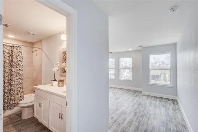 Welcome to your new home,a spacious new construction eagerly awaiting its first owners. This spacious home features an open flr plan with abundant natural light, and seamless flow between living, kitchen, and dining areas, perfect for everyday living or entertaining. Upstairs, the 3 spacious bedrms are equipped with ceiling fans for your comfort providing a peaceful retreat after a long day. The 2.5 bathrms are modern and cater to both family and guest needs. Located on a desirable corner lot with an extra side parking space and side gate, this property is perfect for those with an RV, boat, or multiple vehicles. Garage is extended to accommodate larger vehicles. A privacy fence surrounds the yard, ensuring your personal outdoor haven is both secure and serene. Within close proximity to schools and just moments away from the vibrant Ft Worth Stockyards, one of the city’s most iconic cultural hubs. Price improvement and added features will make this home perfect for first time homebuyers or savvy short term investors