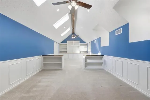 The large upstairs great room—with three remote-controlled skylights—is a versatile space ready to become your home theater, craft studio, or game room.