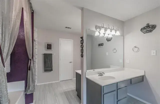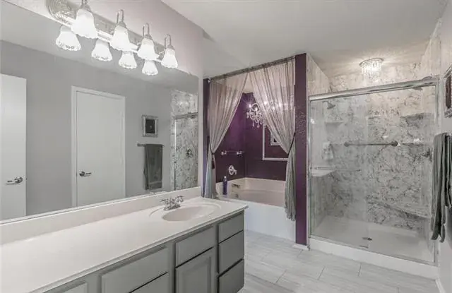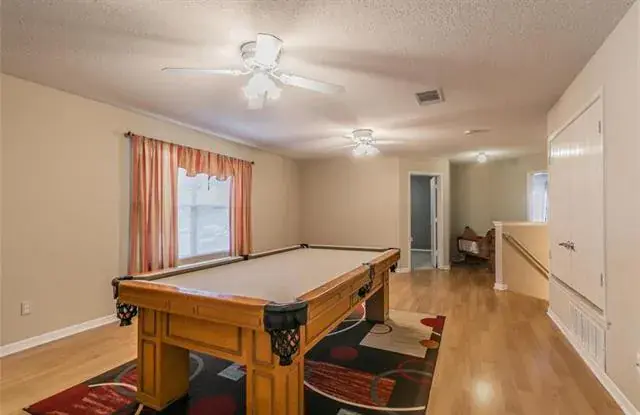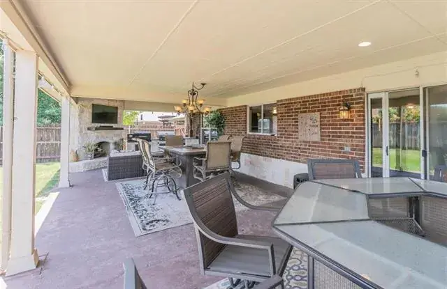 Former model home! Open floorplan, spacious bedrooms, walk-in closets with Updates include stainless steel appliances, wine rack, stone accent dining, breakfast bar, custom built ins, backsplash, lots of kitchen storage, media room, garden tub, separate shower, double vanities, large backyard, patio with balcony, outdoor kitchen and fireplace. The pool table and media room furniture included.