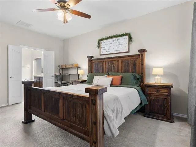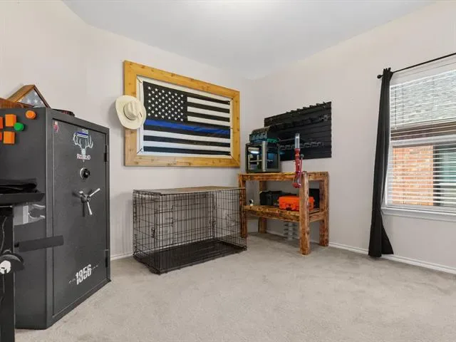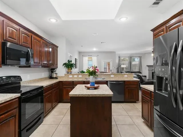 Welcome to this charming single-story home offering a practical layout, comfortable living spaces and the BEST yard on the block! The stone boarders in front yard and covered porch provide a welcoming entry into a spacious foyer, leading to a flex area accented with plantation shutters—ideal for a sitting room, office, or play area. The kitchen is designed for everyday functionality, featuring ample cabinet storage, a central island, black appliances, an eat-at bar, and a skylight that floods the room with natural light. It flows easily into the dining area, creating a connected space for daily meals and includes an eat-at bar for additional seating. At the center of the home, the cozy living room includes a wood-burning cast stone fireplace, perfect for relaxing evenings. The split-bedroom layout offers added privacy, with the primary suite featuring plentiful natural light, dual sinks, a soaking tub, separate shower, and a walk-in closet. A dedicated utility room with a folding table adds convenience to your daily routine. The backyard is designed for low maintenance, with a covered patio and manageable outdoor space that’s easy to care for. Conveniently located with quick highway access and zoned for Northwest ISD, including Eaton High School, this home offers a simple, functional lifestyle in a desirable Northwest Fort Worth location.