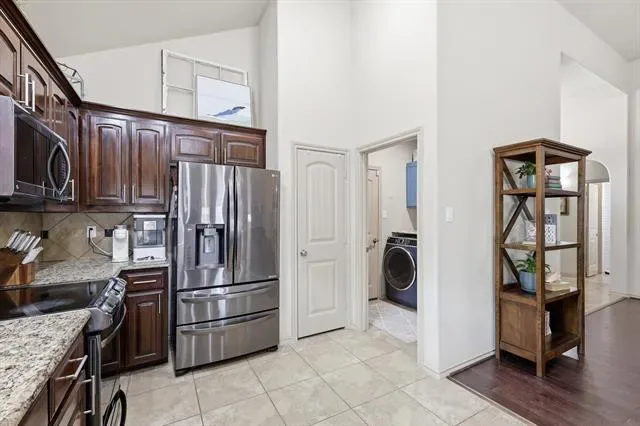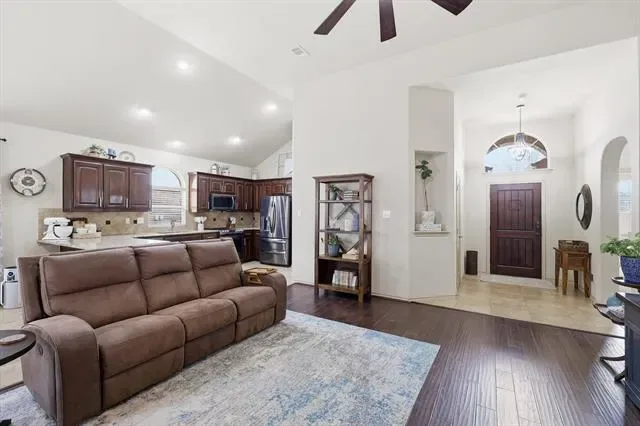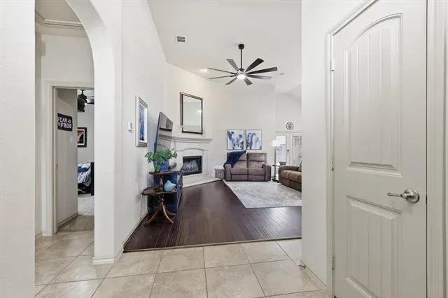 Nestled in a desirable Northwest ISD neighborhood, this beautifully maintained home features a bright, comfortable layout ideal for everyday living. From the moment you step inside, the space feels open & welcoming, with tall ceilings and a fireplace creating a warm focal point in the living room. Natural light fills the home and draws you toward the kitchen and dining area, where large windows and patio doors overlook the backyard. The kitchen sits at the heart of the home, offering generous cabinet space and a layout that keeps everything within reach while remaining connected to the main living area. Whether it’s quiet mornings at the table or gathering with friends and family, the space provides an inviting place to come together. The primary suite offers a comfortable retreat with a spacious bedroom and an ensuite bathroom. Two additional bedrooms provide flexibility for family members, guests, a home office, or any hobby you enjoy. Step outside to a covered patio that extends the living space and overlooks your private backyard with room to relax, play, or enjoy the Texas evenings. Recent updates provide both comfort and peace of mind, including a new HVAC system and water heater installed in 2025, as well as updated fan and light fixtures. A fully decked attic provides valuable additional storage space. Located near schools, shopping – including the newest shopping center, and convenient highway access, this home also offers an easy drive to downtown Fort Worth and nearby airports, blending neighborhood comfort with everyday convenience.