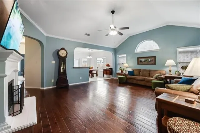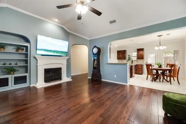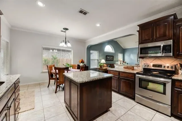 Built-in Features, Chandelier, Decorative Lighting, Double Vanity, Eat-in Kitchen, Granite Counters, Kitchen Island, Open Floorplan, Pantry, Vaulted Ceiling(s), Walk- In Closet(s)