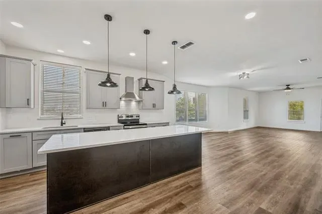 Fully remodeled in 2023–2024, this home showcases a stunning open-concept layout with high-end upgrades throughout. Improvements include a new roof, HVAC, electrical system, hot water heater, flooring, kitchen, and fully renovated bathrooms. The redesigned floor plan offers seamless flow between living, dining, and kitchen spaces, perfect for entertaining and everyday living. The chef-inspired kitchen features custom cabinetry, quartz countertops, a large island, and modern fixtures, all opening to the main living area. Bathrooms also include quartz countertops, while the primary suite boasts a spacious dual-head walk-in shower for a true spa-like experience. Enjoy outdoor living with a large covered front deck and an expansive backyard patio deck. The property also features private, fenced parking with a remote-operated electric swing gate. Ideally located near the Fort Worth Historic and Hospital Districts, this move-in-ready home offers style, comfort, and convenience.
