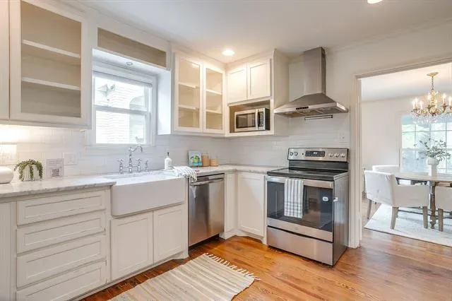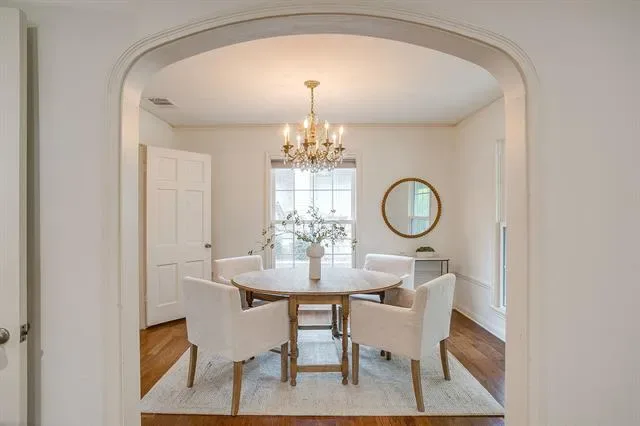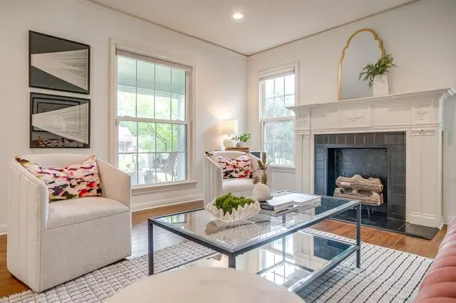 Welcome to your Arlington Heights cottage. From the moment you step onto the covered front porch this home delivers the kind of charm and character that simply can’t be built new. Inside, gleaming hardwood floors and new windows flood every room with natural light, creating a warm, inviting atmosphere throughout. The adorable kitchen is as functional as it is charming and the dining room makes the perfect backdrop for your evening dinners. A truly ideal layout- primary bedroom with private en suite bath, a generously sized secondary bedroom, and a fantastic flex room perfect for a home office, playroom, or guest suite. The hall bathroom sits privately between the secondary spaces, giving everyone their own sense of privacy. A layout that just works. Step outside to the covered back deck, carport, and a large finished outbuilding with electricity-ideal for a studio, workshop, or gym. Large, fenced in yard ready for play. This one is truly move-in ready, with the refrigerator, washer, dryer, and microwave all conveying. Just unpack and start living the Fort Worth life. Dickies Arena, Central Market, and the Camp Bowie District are all right around the corner.