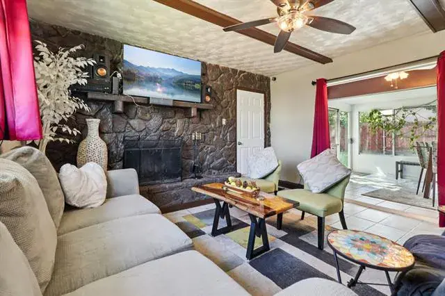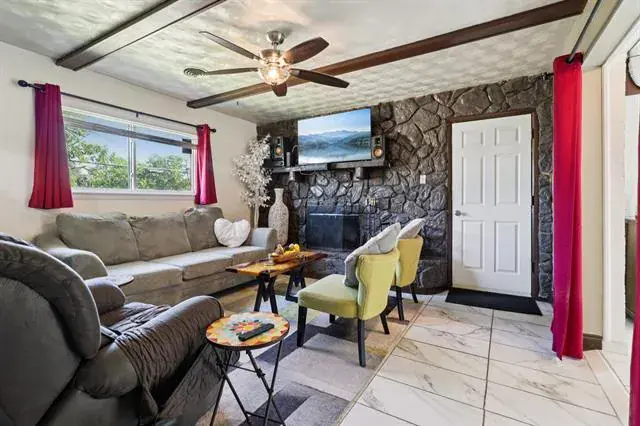 Brick, Family Room, Living Room, Wood Burning