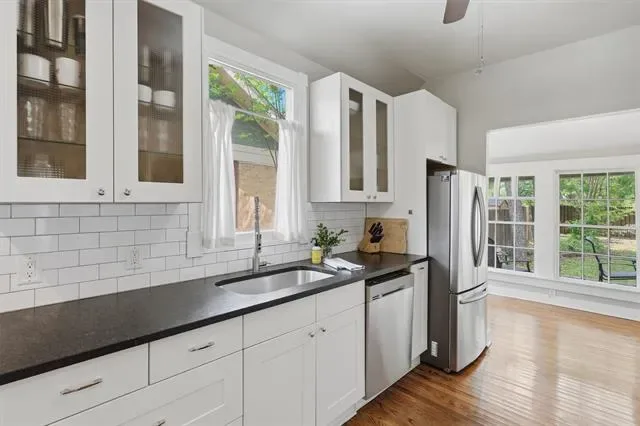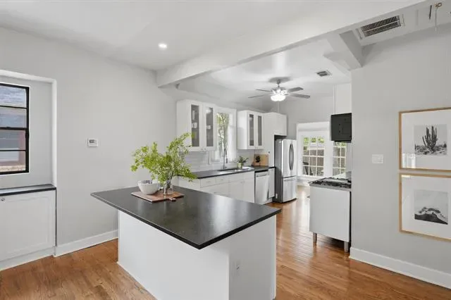 Step into the ultimate Fairmount lifestyle at 1909 6th Avenue, a stunning 1920s Craftsman on arguably one of the best and most iconic streets in the entire Historic District. This home is the perfect best of both worlds find, offering authentic historical charm with its expansive covered front porch and classic wooden swing, while also offering the peace of mind that comes with a fully fenced property and modern upgrades throughout. Inside, the soul of the 1920s remains intact through original hardwood floors and elegant built-ins, but the living experience is elevated by a fully updated gourmet kitchen featuring a gorgeous gas range, a massive center island, tons of built in storage and two renovated bathrooms. Beyond the aesthetics, you’ll find essential modern comforts like a tankless hot water heater, ensuring this more than 100 year old home functions like a dream. Whether you’re cozying up by the floor-to-ceiling stone fireplace or walking just a few blocks to the vibrant coffee shops and patio dining on Magnolia Avenue, this home offers a rare opportunity to own a piece of Fort Worth history without sacrificing a single modern luxury.