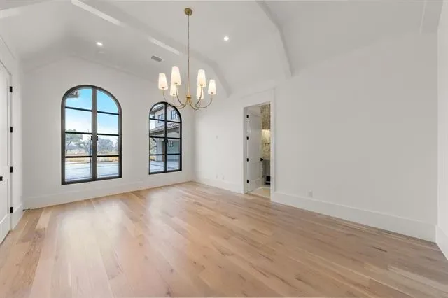 Boasting 5 bedrooms, 5 full baths, 1 half bath, and a 3-car garage, the residence welcomes you through a striking pivot glass entry into a grand foyer highlighted by a sweeping staircase and an impressive family room. A dramatic dual-sided fireplace anchors both the family and dining spaces, while expansive arched glass doors frame breathtaking bluff and lake views and open seamlessly to resort-style outdoor living.