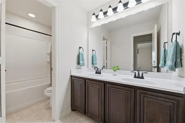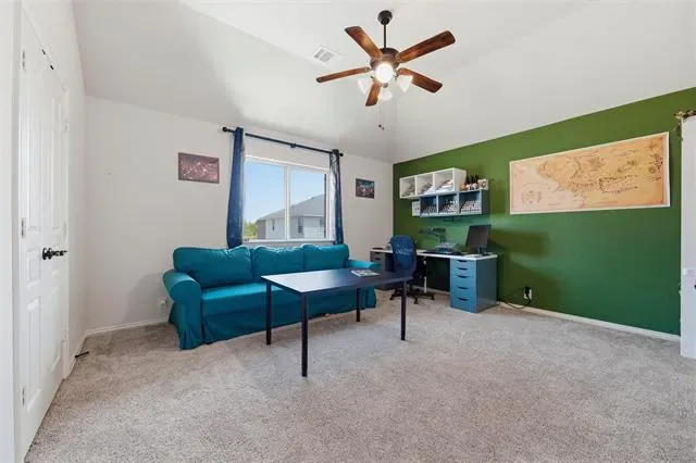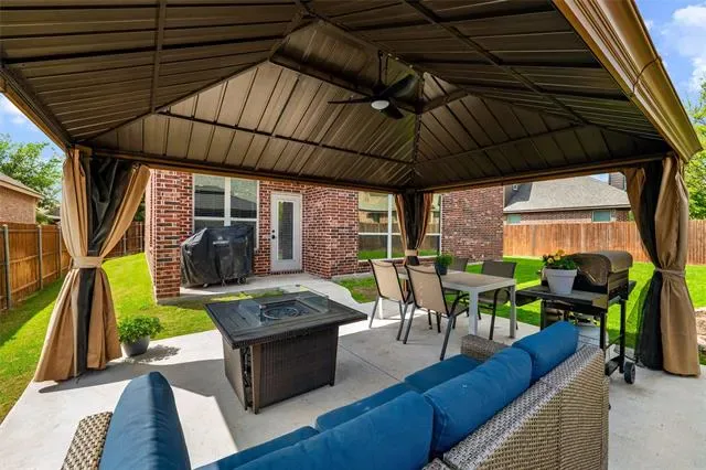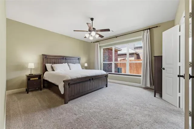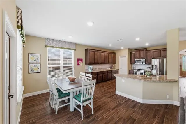Former model home on an oversized lot in Northwest ISD with 5 bedrooms, 3.5 baths, and a rare 3-car garage. This spacious home features wood-look tile flooring, an open-concept layout, and an oversized chef’s kitchen with granite countertops, stainless steel appliances, a large island, and walk-in pantry. Private downstairs primary suite offers dual vanities, garden tub, walk-in shower, and custom closet system. Flexible front room is ideal for dining, office, or sitting area. Upstairs includes a large game room, full laundry room, and 4 secondary bedrooms with well-designed bath access. Covered back patio is perfect for entertaining. Located just around the corner from the community pool and park, this home offers upgraded finishes, functional space, and a prime location.