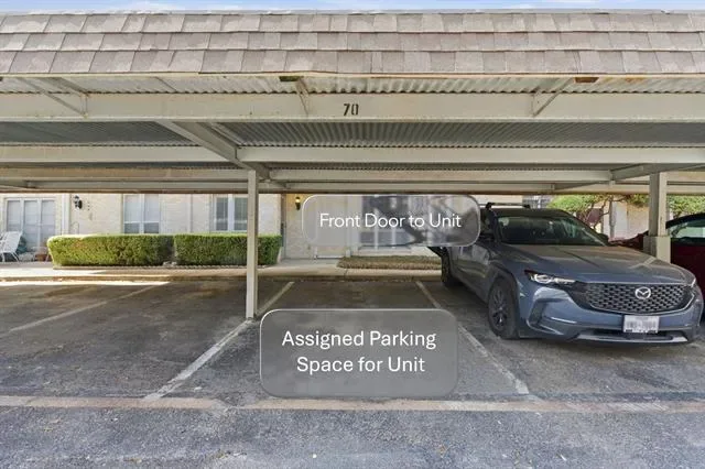 Do the Texas 2-Step All the Way Home! This Fort Worth charmer is dancing to its own beat with a true Texas 2-Step floorplan—located on the 1st floor! 2 living areas, 2 dining spaces, 2 bedrooms, 2 baths, and 2 hall closets. Everything in pairs, everything in perfect rhythm. Enjoy true first-floor convenience with your dedicated parking space just outside the front door — making daily living simple and accessible. The centrally positioned galley kitchen is the heart of the home — perfectly placed between the formal and informal dining areas, keeping everything at your fingertips while maintaining a natural gathering space for guests. Need flexibility? The thoughtfully designed bonus living space offers the perfect — media room, reading retreat, or private lounge. All rooms offer custom plantation shutters. Located in the community courtyard is the sparkling community pool, ready for sunny Texas afternoons. The HOA covers it ALL…. utilities, yard and pool maintenance, so you can two-step right past the stress of juggling monthly bills. Lock and leave luxury at its best. Location That Keeps You in right in step – Directly across from Tanglewood Elementary School – Less than a mile to TCU Baseball fields – Under 5 minutes to restaurants, shopping, grocery stores, banks and more. Quick access to major interstates makes for quick commuting. If you’re looking for convenience with a Texas twist, this home is ready to dance.