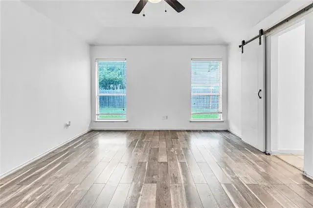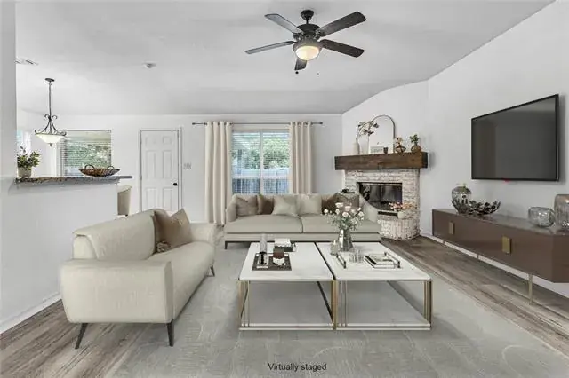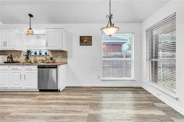 Welcome home to this beautiful cozy house nestled in a nice neighborhood, with 3 bedrooms, 2 baths, kitchen, breakfast nook,2 living areas and adjoining dining area and huge yard with covered patio, for gatherings or play. Primary bedroom features barn door into the updated bathroom. This is a great home for a new beginning and to make new memories. Elementary school is walking distance, down the street. Fridge is included.