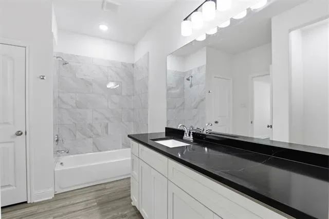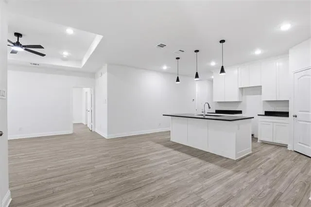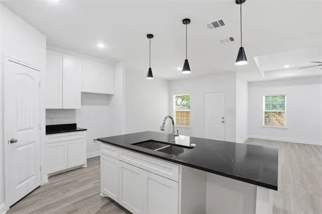 Move-in ready new construction. This 4 bed, 2 bath home offers a modern open layout with high ceilings and clean finishes throughout. Spacious kitchen with large island, custom cabinetry, and quartz countertops consistent throughout the kitchen and bathrooms, perfect for entertaining. Private primary suite with tiled shower. Beautiful flooring throughout for a clean, cohesive look. Includes large laundry room and 2-car garage. Conveniently located minutes from highways and downtown