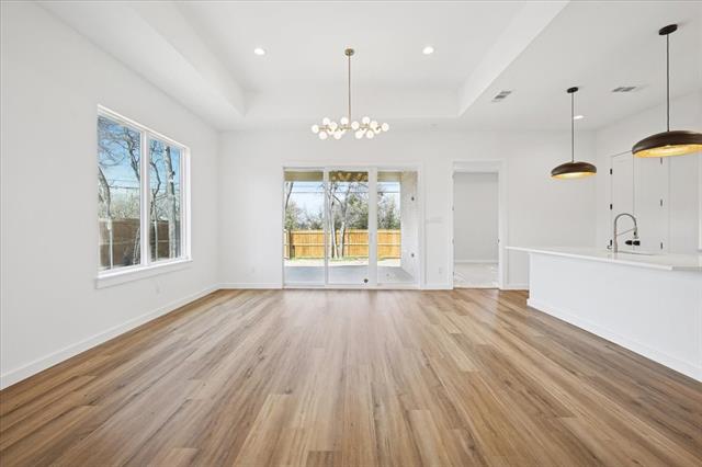 Welcome to this stunning new construction home designed with modern features, quality craftsmanship, and functional living spaces. When entering, notice the open and airy feel created by 10-foot ceilings throughout the home, complemented by 12-foot tray ceilings in both the living and primary bedroom. Eight-foot interior doors and oversized six-foot windows enhance the home’s upscale appearance while allowing abundant natural light. The spacious living area has beautiful electric fireplace provides warmth for ideal everyday living or entertaining. The kitchen is designed for both style and functionality, featuring a large walk-in pantry that provides ample storage, kitchen Island accomodates bar stools. The primary suite offers a private retreat with elevated ceilings, double sinks, a generous walk-in closet designed for bad storms, separate soaking tub and shower. Large 150 square foot covered patio ready to hook up the TV. Extra wide 16 feet side yard for a shop, storage or equipment. Minutes from TCU, Texas Wesleyan, downtown Fort Worth and sought after Bricktown.