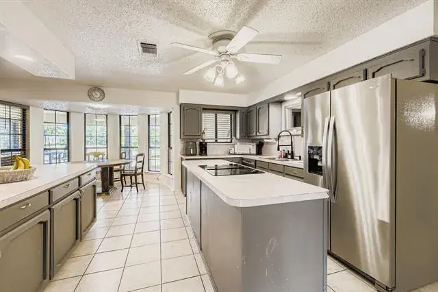 Welcome to 6232 N Ridge Rd, a spacious Fort Worth retreat that blends comfort, entertainment, and functionality. Step into a large living room centered around a cozy fireplace, perfect for relaxing evenings or gathering with guests. The kitchen is a standout, featuring an island with electric cooktop, breakfast bar, and a sunny breakfast nook for casual meals. A separate game or media room with a wet bar adds even more space for entertaining or unwinding. The primary bedroom offers an ensuite bath with dual sinks and a walk-in closet, providing a private and practical retreat.