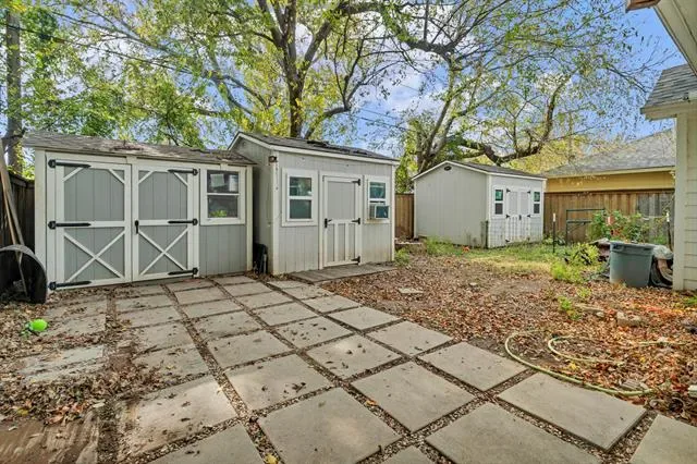 Beautiful updated home filled with thoughtful improvements and modern touches, remodeled kitchen, custom island, soapstone countertop, upgrade bamboo flooring, built in Murphy bed, enhanced storage, a newly added master walk in closet. Structural updates like new subflooring, remodeled utility area, and pocket doors. Outside 6′ cedar privacy fence, freshly painted exterior, cedar trimmed front porch, added patio space, storage shed to the left stays other two are negotiable . Located quarter mile from trinity trail, the trinity river, and Delga Park, the home offers incredible walkability and access to outdoor recreation, jogging & cycling paths, and serene green space. Move in ready home in highly desirable area. Tool shed added 2018, 6′ cedar fence 5-1-2020, Exterior House painting 5-11-2020, Front Porch cedar trim 5-11-2020, Back Patio 6-6-2020, Two additional storage sheds 8-24-2023 negotiable. Kitchen remodeled 6-24-2018, kitchen Island 7-10-2021, soapstone Island countertop 8-23-2021, Murphy bed 5-2-2021, New pocket door installation 10-6-2018, Primary bed closet 9-17-2019, utility area 8-30-2018, subfloors & bamboo flooring 2-4-2020 remodeled in 2017 seller will pay $5,000 towards buyers CC or rate buy down