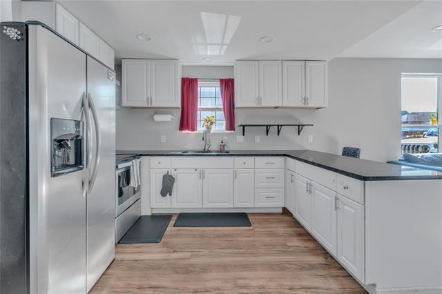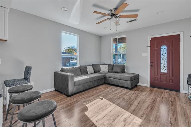 Updated 3-bedroom home in Fort Worth with a wide front porch and great curb appeal. Inside, you’ll find an open layout with laminate flooring, neutral paint, and plenty of natural light. The kitchen features white cabinetry, granite countertops, stainless steel appliances, and a functional breakfast bar that opens to the living area. All bedrooms are well-sized, with a full bath located conveniently off the hallway. The spacious backyard includes a covered patio with ceiling fans and a storage shed, offering additional space for tools or projects. Driveway parking is available on both sides of the home. Located minutes from Downtown Fort Worth, major highways, and nearby redevelopment throughout the neighborhood. This home is move-in ready and a solid option for owner-occupants or investors.