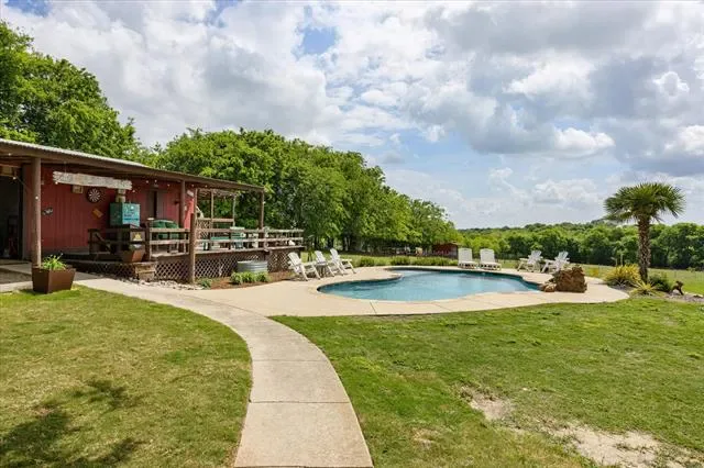 517 Council Drive backs up to Benbrook Lake. Lead your horses out the back gate to enjoy 14 miles of equestrian trails. With NO HOA, the opportunities are endless! Fenced and cross-fenced for goats and horses, this home is surrounded by large trees and is beautifully landscaped and lit. There are 4 fenced pastures, a small barn and loafing shed. There is also a 1 acre easement that the current owners have been using for horses, along with a pool house with views of the property and pool. The home offers 2335 sqft featuring 3 bedrooms and 2 baths with a large office or 4th bedroom. The living room, dining and kitchen area open to one another creating the perfect entertaining space. Cozy up to the wood burning fireplace. The kitchen has an island, double ovens, granite countertops, ample cabinetry, and a built-in desk area. Bring your animals to this beautiful property and it’s just 10 miles from Dickies Arena!!**New roof in 2025.