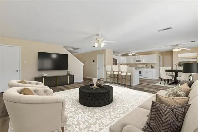 Welcome to 4137 Capstone Drive in Keller, a spacious and thoughtfully updated two story home offering approximately 3,052 square feet of comfortable living space in a convenient location. Built in 2003, this well maintained residence features four generously sized bedrooms and two and a half bathrooms, providing flexible living arrangements suitable for a variety of needs. Step inside to discover an open concept floor plan designed for everyday living and entertaining. The main living area flows seamlessly into the dining space and kitchen, creating a bright and connected environment with excellent natural light and sightlines across the home. Recent interior improvements include new flooring throughout along with beautifully updated kitchen cabinetry and modern countertops that provide both style and functionality. The kitchen serves as the heart of the home with abundant cabinet storage, generous counter space, and a layout that supports efficient meal preparation while remaining connected to surrounding living areas. The open design allows gatherings to flow comfortably between the kitchen, dining, and living spaces. Upstairs and downstairs living areas provide flexibility for a variety of uses including a game room, media space, home office, or secondary lounge area. Each bedroom offers comfortable dimensions and practical storage, while the primary suite provides a private retreat with ample space to unwind. Outside, the backyard includes a covered patio ideal for relaxing, outdoor dining, or quiet evenings. Residents also benefit from neighborhood amenities including a community pool, playground areas, and scenic walking and hiking trails. Located in Keller with convenient access to Highway 170, shopping, dining, and local conveniences are just minutes away. With over 3,000 square feet, recent interior updates, and a functional open layout, 4137 Capstone Drive offers space, comfort, and location in one attractive property.