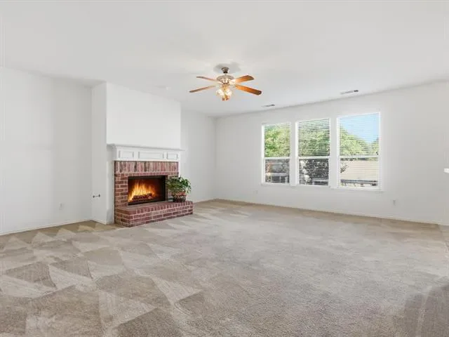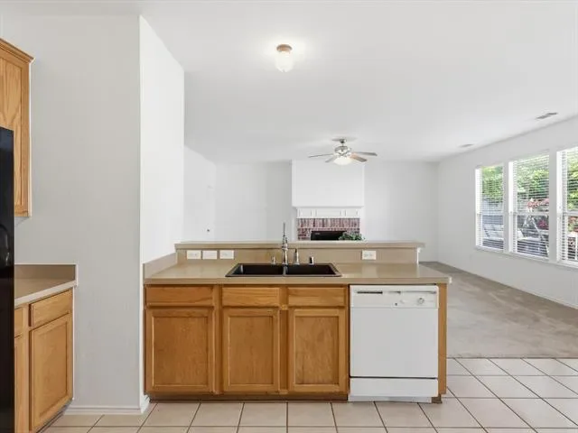 Spacious and inviting 4-bedroom, 2.5-bath home in highly sought-after Keller ISD offering a functional layout and great everyday living. The oversized primary suite provides a true retreat with a large bedroom and an ensuite bath featuring a garden tub, separate shower, and ample space to unwind. The open concept kitchen flows seamlessly into the living area and includes a breakfast bar, ceramic tile flooring, and plenty of room for gathering and entertaining. The living room features a cozy brick hearth fireplace and is filled with natural light throughout. This home is prewired for a home theatre setup, making it easy to create the perfect media or game space. Secondary bedrooms are generously sized, offering flexibility for family, guests, or a home office. Step outside to a covered patio ideal for relaxing evenings or weekend get-togethers. Conveniently located near shopping, dining, and major highways, this home combines comfort, space, and location in one solid package.