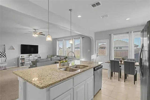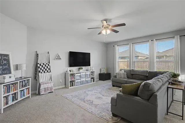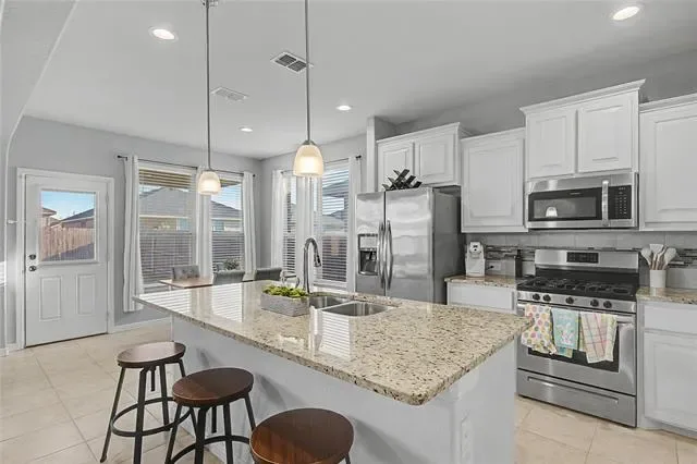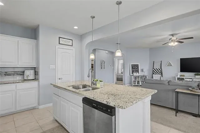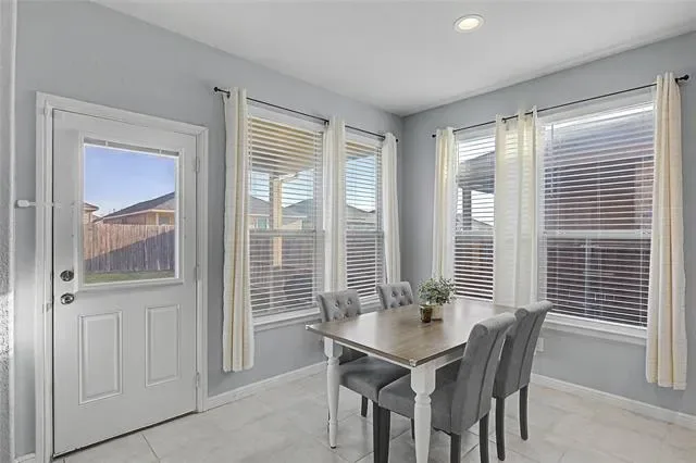 Welcome to this beautifully maintained 3-bedroom, 2-bath home located in the highly sought-after Northwest ISD, just a short walk to Lizzie Curtis Elementary in the desirable Hawthorne Meadows community. From the moment you step inside, you’ll feel right at home. The open-concept floorplan creates a bright and airy living space filled with natural light from an abundance of windows, perfect for both everyday living and entertaining. The kitchen showcases granite countertops, a spacious island with breakfast bar seating, a gas range, and a walk-in pantry, perfectly blending style and functionality. The spacious living area seamlessly connects to the kitchen and dining spaces, offering an ideal layout for gatherings. The private primary suite features dual sinks, a relaxing tub, separate shower, and a generous walk-in closet. Secondary bedrooms are split from the primary suite, providing added privacy for family or guests. Additional highlights include a dedicated utility room with built-in shelving and a large backyard complete with a covered patio, ready for you to create your own outdoor retreat. Residents of Hawthorne Meadows enjoy access to fantastic community amenities including a pool, playground, and scenic ponds.