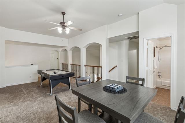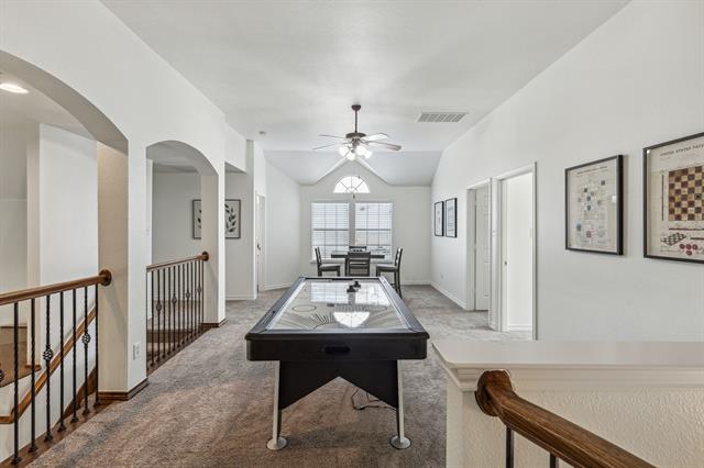 Prepare culinary masterpieces in the gourmet kitchen featuring a gas cooktop, ample cabinetry, and gleaming countertops—perfect for every aspiring chef! Whether you’re hosting dinner parties or casual brunches, this space will inspire your inner entertainer. Retreat upstairs to find a spacious game room that invites laughter and fun! Create lasting memories with movie nights, game tournaments, or simply unwind in this versatile area tailored for relaxation.