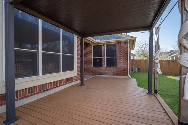 Step outside to enjoy the lighted covered patio, complete with plenty of room for outdoor furniture—perfect for entertaining, grilling, or simply enjoying memorable Texas evenings under the stars. The home also features a smart irrigation system to keep your lawn looking its best with ease.