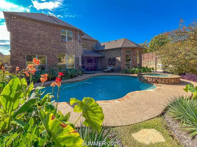 Welcome to The Bluffs in Heritage—where luxury, privacy, and thoughtful updates come together! Perfectly positioned on an expansive corner lot within a rare double cul-de-sac, this exceptional home offers enhanced privacy, minimal traffic, outstanding curb appeal, and a 3-car garage. The spacious backyard is a true highlight, featuring plenty of room to entertain, play, and relax, along with a sparkling pool that creates your own private outdoor retreat.
