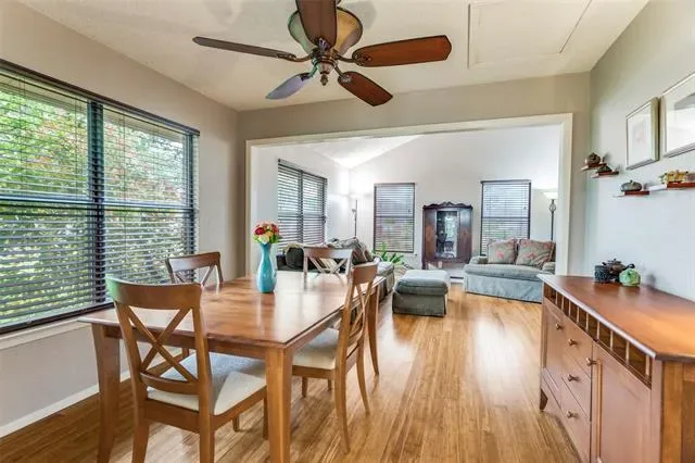 Room to Breathe — Inside and Out This home doesn''t just have space, it has the right space. Two living areas and two dining spaces make hosting family and friends effortless. A flex room, dedicated office, and sun-drenched sunroom mean everyone can find their favorite corner. Four generously sized bedrooms and three full baths round out a floor plan that truly works for everyday life.The Heart of the Home The open living areas flow naturally from room to room — soaring ceilings, warm wood floors, a classic brick wood-burning fireplace, and natural light pouring in from every angle. A corner sitting area with backyard views makes it easy to keep an eye on the action outside while still feeling cozy inside.