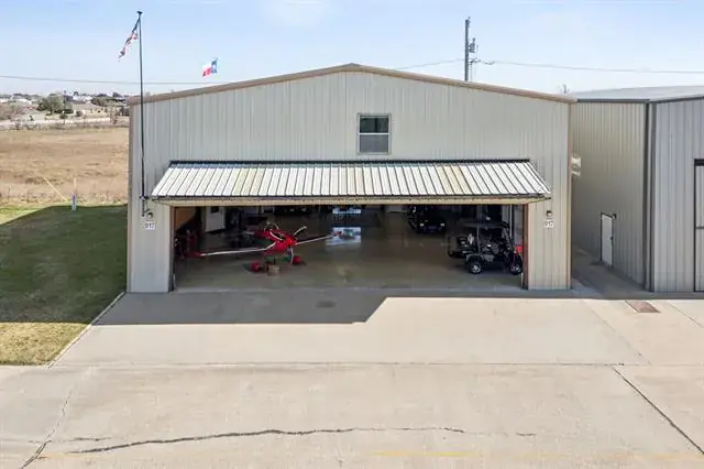 Built in 2007, this 5,500 square foot luxury hangar residence is ready for its new owner – being sold turnkey, including most furnishings! The hangar is conveniently located in the northeast portion of the airfield near the north airport entrance gate for quick road access. Just a short taxi to the 3,750'' paved and lighted runway! The insulated hangar bay has an old-fashioned walk-in beer and wine cooler, full bath, built-in cabinets, laundry room, epoxy painted floor, ample lighting, two roll-up garage doors for unbelievable ventilation in the summer, and a covered porch out back that runs the width of the hangar. The electric bi-fold hangar door has a 45'' wide x 12'' tall opening which will accommodate most single engine piston aircraft. From the hangar, take a walk upstairs and you will quickly forget you are in a metal building! The second floor boasts a luxurious 3-bedroom, 2.5 bath home with open concept kitchen, dining, and living room and high-end finishes and furnishings throughout! Master bath is bigger than most bedrooms! Balcony access through the living area and bedroom with endless views to the east overlooking a 200 plus acres ranch. There is really too much to list! Hangar bay: 50'' x 55''' Hangar door opening: 45'' wide x 12'' tall' 2,750 SF 2nd floor residence' 3-bedroom' 3.5 bath' 4,800 SF land parcel' You own the land (not an airport ground lease)' Well water' Community septic' 100LL fuel available on the airfield. Hicks Airfield is just minutes from fine dining, brand new Kroger and Lowes, and only 15 minutes to the internationally famous Fort Worth Stockyards! This hangar will make a great primary residence, second home, man cave, or woman cave!