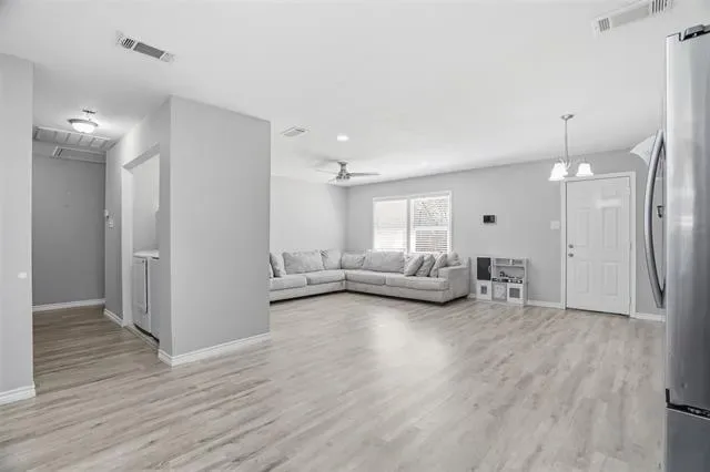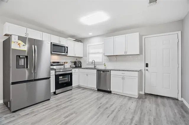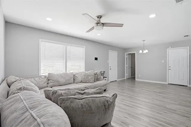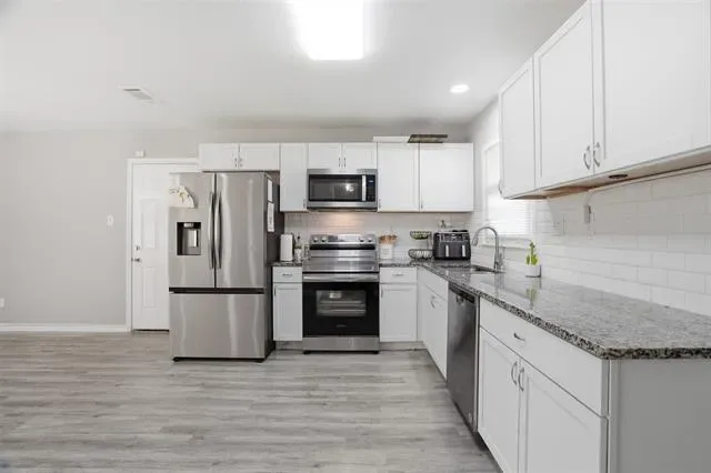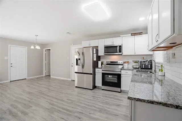 Welcome to this beautifully updated 4-bedroom, 2-bath home offering comfort & style. Fresh interior paint creates a bright, inviting atmosphere throughout, complemented by durable LVP flooring and an open-concept layout perfect for everyday living and entertaining. The updated kitchen features granite countertops, stainless steel appliances, and Shaker-style cabinetry, providing both functionality and modern appeal. The spacious dining area easily accommodates a full-size table, making it ideal for gatherings. The primary suite includes an updated bathroom for a relaxing retreat.Step outside to a generously sized backyard with plenty of space for entertaining, play, or future customization. Located just a street away from the community center and within walking distance to the park, this home offers easy access to fantastic neighborhood amenities including a walking trail, playground, covered pavilion, basketball courts, and tennis courts.
