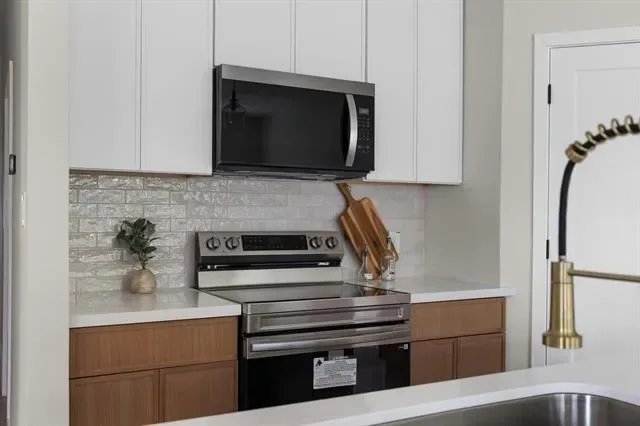 The kitchen is the heart of the home, featuring sleek quartz countertops, custom cabinetry, a spacious island, stainless steel appliances, blending function and beauty effortlessly. Adjacent dining and living areas create a cohesive space ideal for gathering.