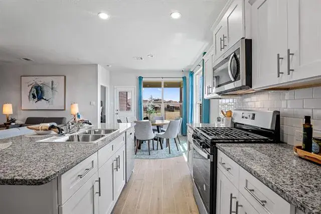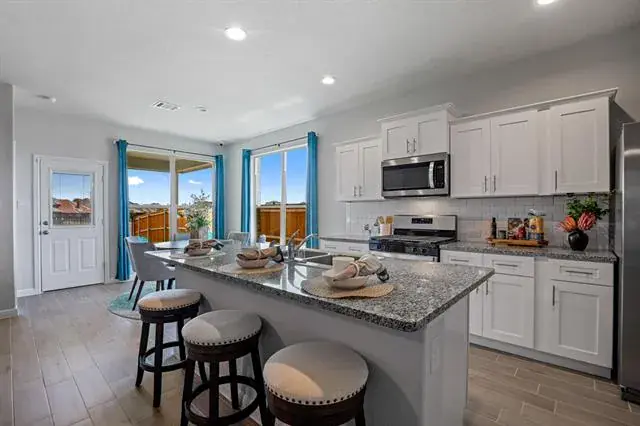 BEAUTIFUL NEW D.R. HORTON HOME in HIGHLANDS at CHAPEL CREEK located in WEST FORT WORTH!! GREAT OPEN CONCEPT FLOORPLAN TO SUIT THE NEEDS OF MANY! Stunning Oxford Floorplan-Elevation A, with an estimated November completion. Spacious open Living, Dining and large Chef’s Kitchen with abundant counter and cabinet space, seating Island, Granite Countertops, stainless steel Appliances, Gas Range, Built-in Microwave and walk-in Pantry. Split Bedroom arrangement with large primary Bedroom, two sink vanity, 5 foot over sized shower and walk-in Closet. Cultured Marble Vanities in both Baths, Tiled Entry, Hallways and Wet areas plus Home is Connected Smart Home Technology. Covered front porch and back Patio and 6 foot privacy fenced Backyard. Gas Tankless Water Heater, partial Gutters, Landscape Package with full sod and Sprinkler System. Community Pool, Cabana and Playground. Close proximity to Downtown Fort Worth, Sundance Square, Shopping, Restaurants DFW Airport and much more!