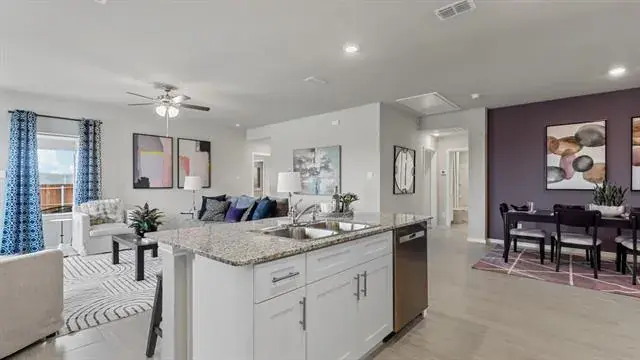Available for a quick Move-in!! Beautiful new D.R. Horton home in the Highlands at Chapel Creek community located in White Settlement ISD!! Complete and Move-in Ready! The beautiful single-story Lakeway Floorplan, Elevation B, offers 4 bedrooms, 3 bathrooms, a versatile study, and a 2-car garage with a thoughtfully designed open-concept layout perfect for both relaxation and entertaining. The family room, dining area, and modern kitchen blend together effortlessly, creating a spacious and inviting central living space. The chef-inspired kitchen showcases quartz countertops, 36” upper cabinets with hardware, stainless steel appliances, a electric range, stainless steel sink, center island, and a walk-in pantry for convenient storage. The private primary suite features an en-suite bath with dual quartz vanities, a 5-foot oversized shower, and a walk-in closet located off the bathroom. Three secondary bedrooms and two additional full bathrooms provide comfortable accommodations for family and guests. Luxury vinyl plank flooring extends throughout all main living areas and wet zones. Built with energy-efficient construction and America’s Smart Home Technology, plus tank water heater, landscape package, sprinkler system with rain sensor, and privacy fencing. Community Pool, Cabana and Playground. Close proximity to DFW Airport, Cleburne''s Nature Center, Sundance Square Downtown, Shops, Restaurants and more!