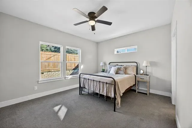 Nearly new 2023 construction with two primary suites, no HOA, oversized covered patio, and private backyard just minutes from Downtown Fort Worth.