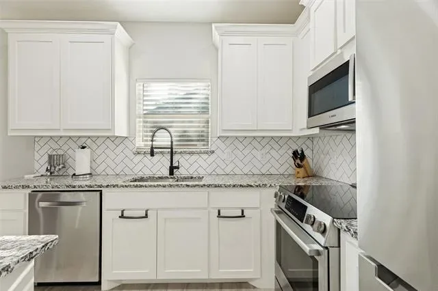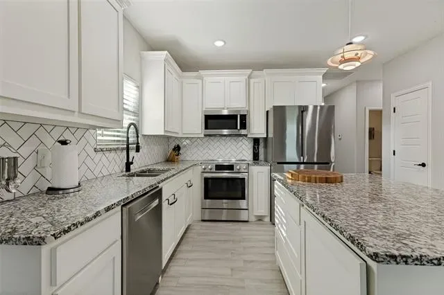 Welcome to this stunning like-new home located 5 minutes from dowtown Fort Worth. This beautifully maintained property features lush landscaping and offers 4 spacious bedrooms and 3.5 baths, providing ample space for families of all sizes. Step inside to discover elegant wood look ceramic tile throughout the first floor, enhancing the home’s modern aesthetic. The kitchen is a dream, complete with custom cabinets and a stylish island perfect for meal preparation and entertaining. Primary suite and office (flex space) are located on the first floor, while three additional bedrooms are upstairs, accompanied by two full baths, including a convenient jack and jill bathroom. Situated on a generously sized lot, this home offers both comfort and charm. The office has a closet and could be a 5th bedroom. 20 minutes to the Arlington entertainment district.