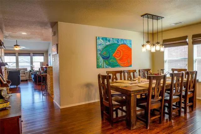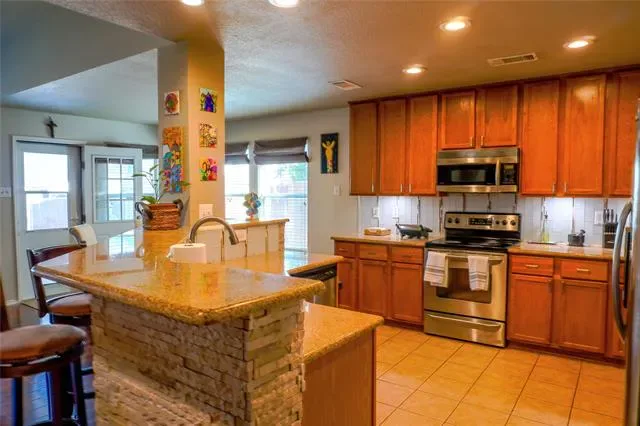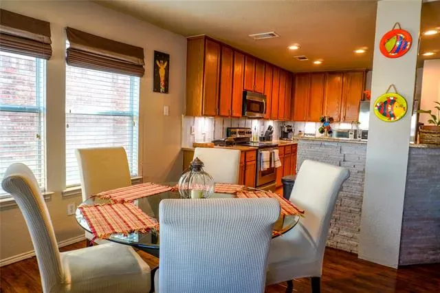 This BURLESON BEAUTY could be exactly what you have been looking for! The highly desired neighborhood of Highpoint Hill is conveniently located 2 minutes from I-35, in close proximity to a movie theatre, great restaurants, shopping and schools. This home offers LOTS of options with 4 full bedrooms, along with an huge upstairs flex space, and a downstairs home office that could easily be converted to an extra bedroom. With nearly 3,000 square feet to work with, this open concept floorplan can fit any family’s needs! Warm neutral paint colors run throughout the home, along with updated LED lighting. The center of the home is a chef’s dream with gorgeous granite countertops, stainless appliances, stone accents, and a modern backsplash with mood lighting. Enjoy meals in either the spacious breakfast nook or your dedicated formal dining room. The master’s retreat is conveniently located downstairs. All the secondary bedrooms are upstairs each with their own large walk-in closets, A wood burning stone fireplace is placed in the family room, and the utility room is down the hall on the first floor. Stepping outside will feel like your own private oasis with your covered patio to cover your grills, and stone pavers to create your own outdoor sitting areas. The backyard shed has a concrete foundation and adds to extra storage. New Carrier AC units were installed just 3 years ago and a whole new roof with architectural shingles was installed in 2020. A brand new water heater was also installed less than 2 years ago. There’s just so much this house has to offer! It’s priced to sell quickly for Burleson, so come take a look at it today!
