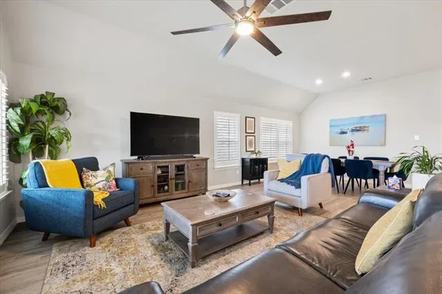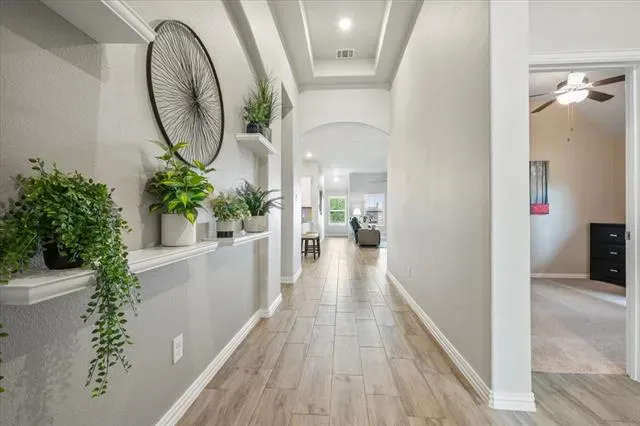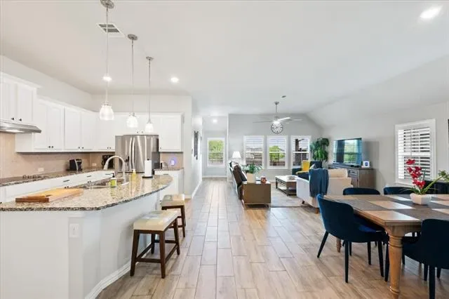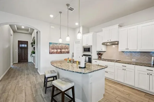 Modern Elegance & Unbeatable Burleson Convenience! Discover the perfect blend of modern luxury & peaceful living in this immaculate 3-bedroom, 2-bathroom home, designed for today’s lifestyle. Nestled in a desirable Burleson neighborhood, this home feels brand new & offers an unparalleled living experience, both inside & out. Step inside to an expansive open-concept floor plan unified by beautiful wood-look tile flooring. The gourmet kitchen is an entertainer’s dream, featuring a massive granite island, walk-in pantry, pristine white cabinetry, stainless steel appliances & a dedicated wine fridge that conveys with the home. This stunning space flows effortlessly into the bright & airy living & dining areas, adorned with elegant plantation shutters that fill the home with natural light. Retreat to a private primary suite, a sanctuary boasting a spa-like ensuite bathroom, dual vanities, relaxing soaking tub, separate walk-in shower & a generous walk-in closet. The smart split-bedroom layout ensures maximum privacy for family & guests. One of the home’s most coveted features awaits outside: a spacious, fully-fenced backyard with a covered patio perfect for grilling & relaxing. With no neighbors behind you, you can enjoy a rare sense of privacy. Practical upgrades abound, including a new roof, a full sprinkler system & floored attic over the 2-car garage for extra storage. Beyond the front door, the location offers an unbeatable lifestyle. Situated minutes to I-35W, your commute to Fort Worth is a breeze. You’re perfectly positioned to enjoy the charm of Old Town Burleson, the convenience of shopping at Burleson Commons with Target, Kroger & a vibrant dining scene with 100+ options, from upscale evenings at American Revelry to classic Texas comfort food at Babe’s Chicken. Medical facilities, parks & Hidden Creek Golf Course nearby, everything you need is nearby. This turnkey property is more than a home-it’s your access to a convenient, exciting & comfortable lifestyle.