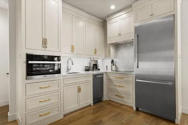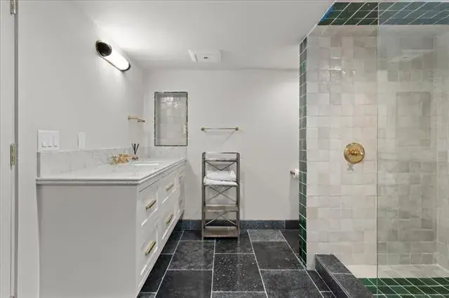 The entire top floor is a dedicated primary suite with dual ‘his and her’ baths and closets. The main level hosts the open-concept kitchen, entertaining spaces, and a powder bath. The daylight basement features a spacious TV-Media room, two guest bedrooms, two full bathrooms, and the primary laundry facility. Completing this estate is a separate, full-service guest quarters with its own kitchen, living, bed and bath. This is an unparalleled blend of history, durability, and prestige.