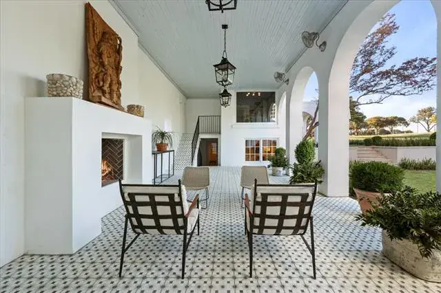 The re-imagined, pristine landscape offers unobstructed, panoramic views of River Crest Golf Course. Two private balconies on the second level also overlook the golf course. The home features unrivaled luxury with three fireplaces, including one in the stunning main level loggia, a perfect outdoor entertaining space.