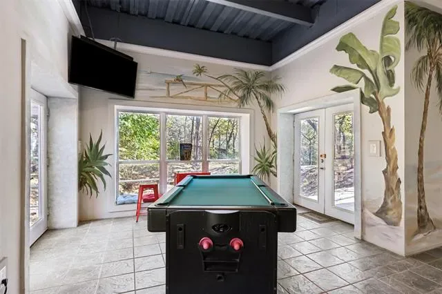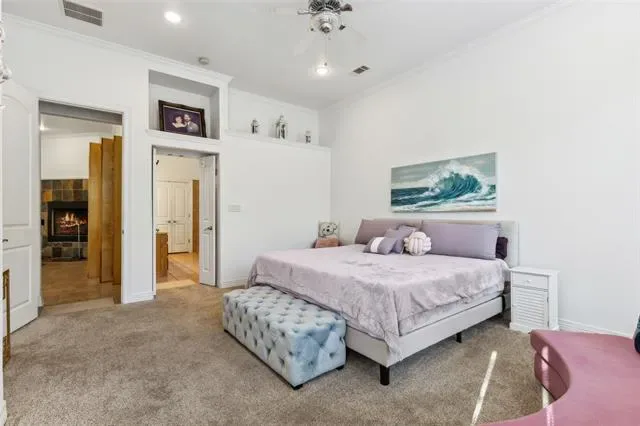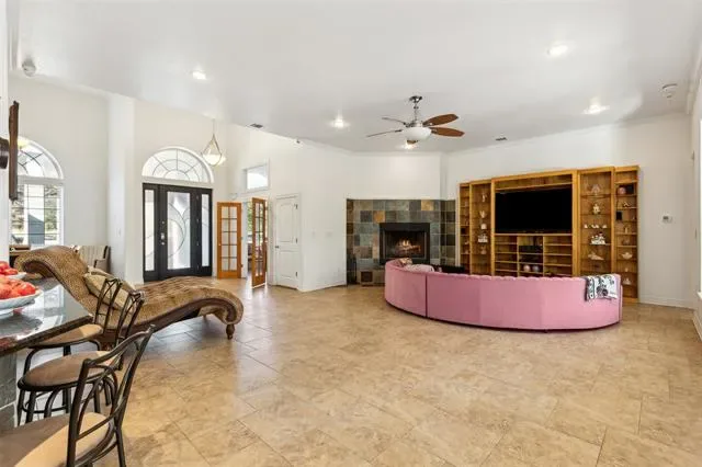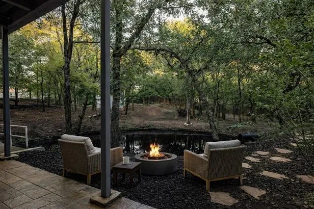 Constructed using Insulated Concrete Form (ICF) walls, the home was designed with durability and efficiency in mind—solid, energy-efficient, and built to endure. The indoor pool level is separated by a dedicated firewall, providing an additional layer of structural integrity and thoughtful design. Inside, the home offers generous living space and a feature rarely found in Fort Worth: a large indoor swimming pool, a place where light moves across the water and the idea of home begins to feel more like retreat. Above it all, a balcony with its own fireplace overlooks the pond, offering a quiet place to sit as evening settles across the trees and the water grows still. The property welcomes you with a circular driveway, an oversized garage, and the quiet confidence of a home built to last.
