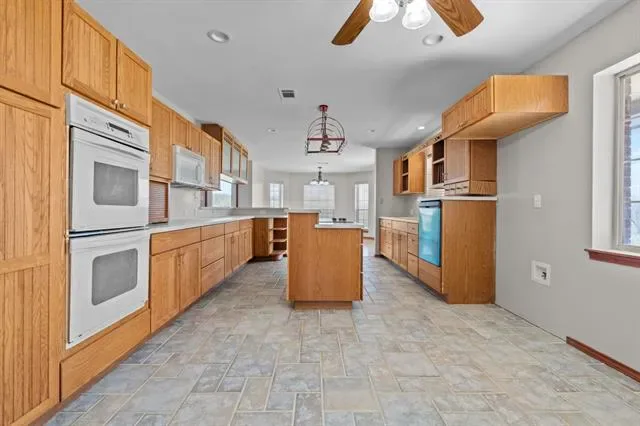 Step outside and imagine what life could look like here—kids running freely, room for animals, space to build a shop, add a pool, or simply enjoy the freedom that comes with owning usable land. The property is fully fenced and cross-fenced, with a separate rear pasture area, plus a small pond at the front that creates a peaceful and welcoming entrance. The expansive paver patio is the perfect place to start your mornings or wind down in the evenings, taking in wide Texas skies and quiet surroundings.