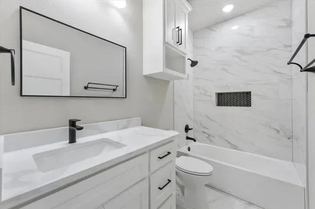 Welcome to this beautifully crafted new construction home! Featuring a striking brick and stone exterior, this home offers incredible curb appeal with long driveway and spacious lot. Step inside to an open concept layout filled with natural light, soaring ceilings, and stylish finished throughout. The kitchen showcases elevated design and functionality, complete with a large island, sleek quartz countertops, custom cabinetry, modern black fixtures and designer pendant lighting perfect for entertaining. The living and dining areas flow seamlessly, highlighted by a statement accent wall and expansive space for gatherings. Step outside to enjoy a large backyard with mature trees, ideal relaxing and entertaining, with convenient access through the extended driveway perfect for additional parking, easy entry, or outdoor use.