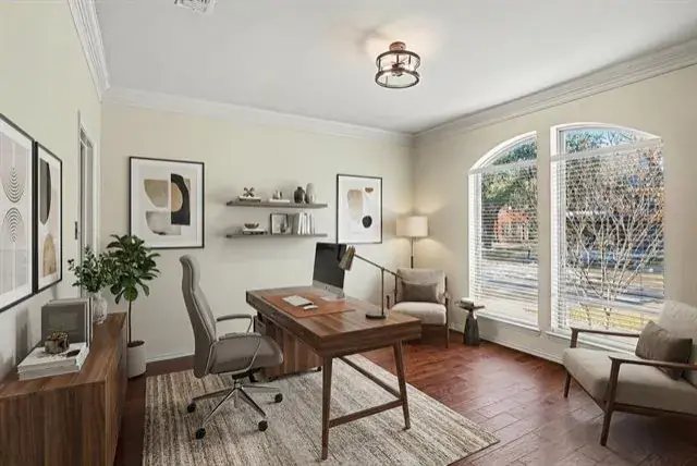 The heart of the home features an open-concept main living area filled with natural light, seamlessly connecting to the formal dining and formal living rooms, perfect for hosting gatherings both large and small. A dedicated office with custom built-in shelves and desk provides a functional and stylish workspace. Abundant storage throughout the home ensures everything has its place while maintaining a clean, uncluttered feel.